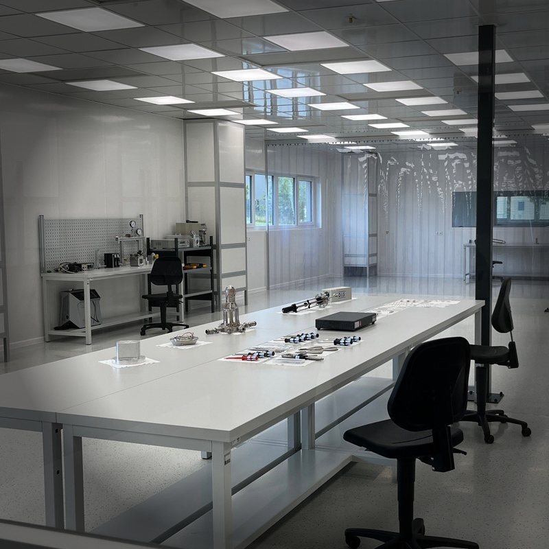 - Upon customer request, we can provide a cleanroom class ISO 5 by adding flow hoods