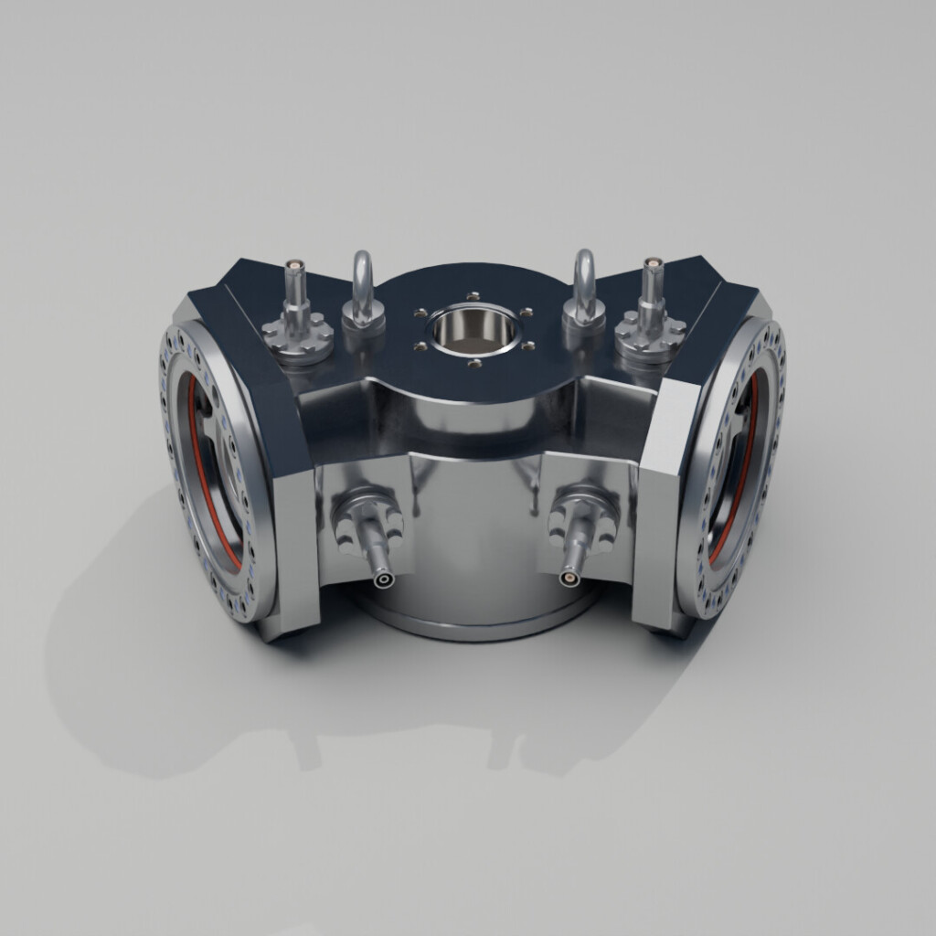 - DN100 CF and 2x DN40 CF accessory flanges (e.g., vacuum pump, viewport, vacuum gauge, beam dump, or Faraday cup installation)